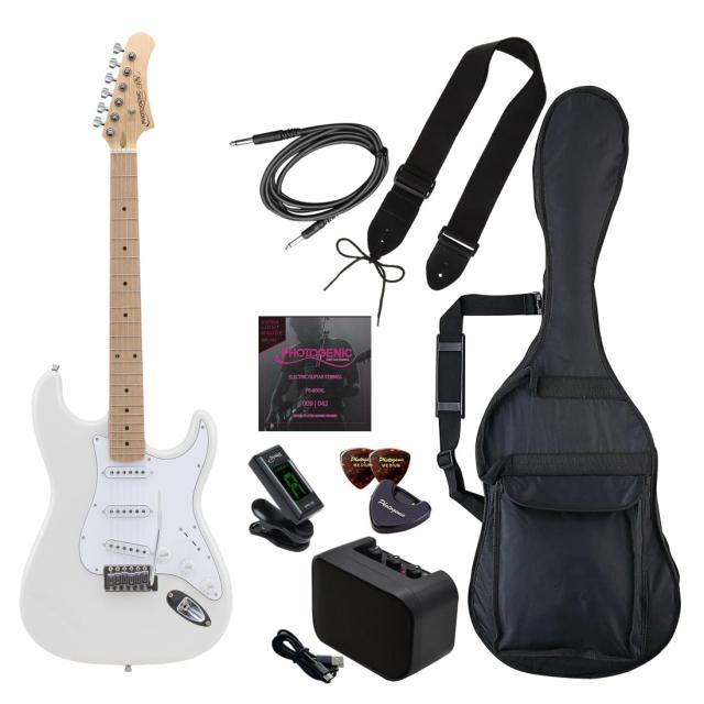 PhotoGenic エレキギター 初心者入門ライトセット STタイプ ST-180M/WH ホワイト [ソフトケース/シールド/ミニアンプ/チューナー/ストラ