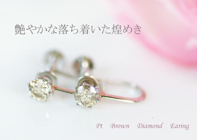 イヤリング ブラウン ダイヤモンド 0.3ct プラチナ Pt 一粒 1粒 ソリティア 6本爪 6爪 レディース アクセサリー ジュエリー ギフト 159016 ダイヤ