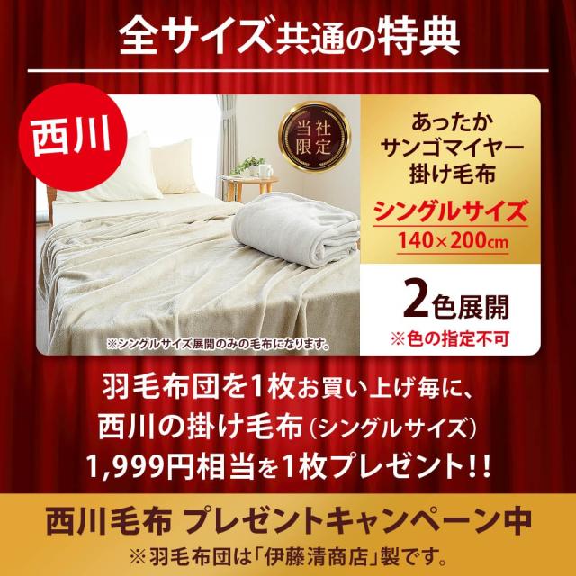 羽毛布団 シングル ロング 【1/14〜 西川 の 毛布 (シングルサイズ) プレゼント】 ダウン93% ロイヤルゴールド 【7年保証】 威風堂々 日本製 ホワイトダック ポーランド産 1.2kg ダウンパワー400dp以上 150×210 羽毛ふとん