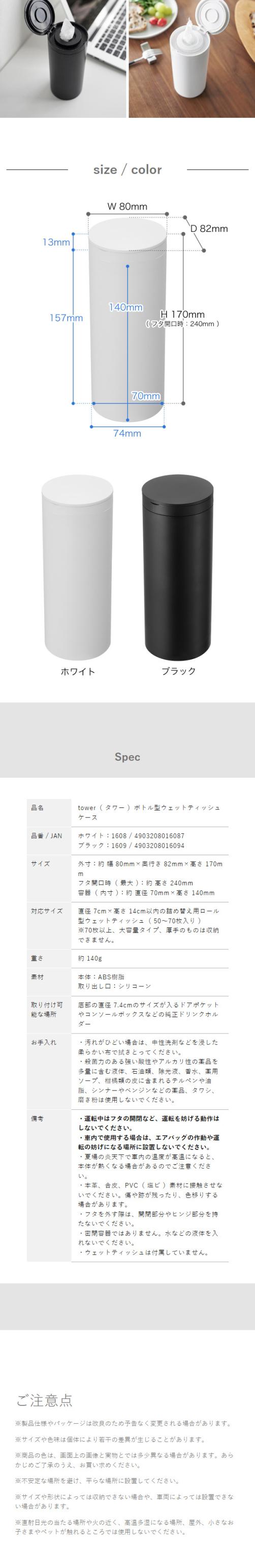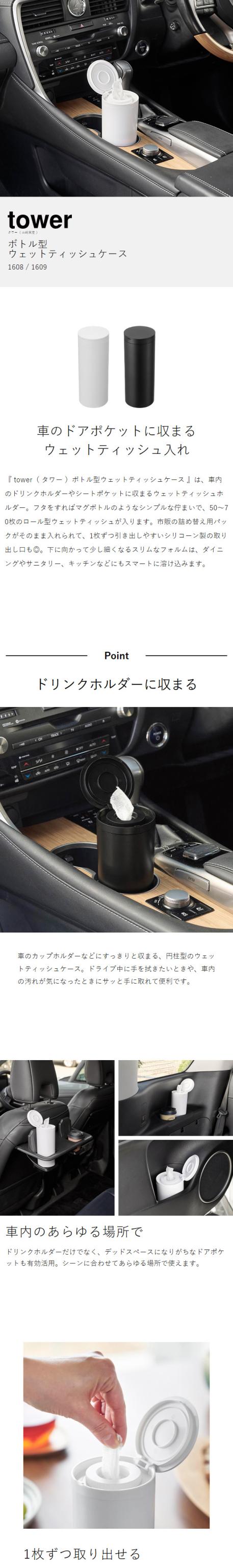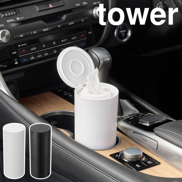 [ ボトル型ウェットティッシュケース タワー ]山崎実業 tower ウェットティッシュ ケース 車 車内 詰め替え ドリンクホルダー ウエットティッシュ 縦型 スリム キッチン おしゃれ yamazaki 公式 ブラック ホワイト 1608 1609