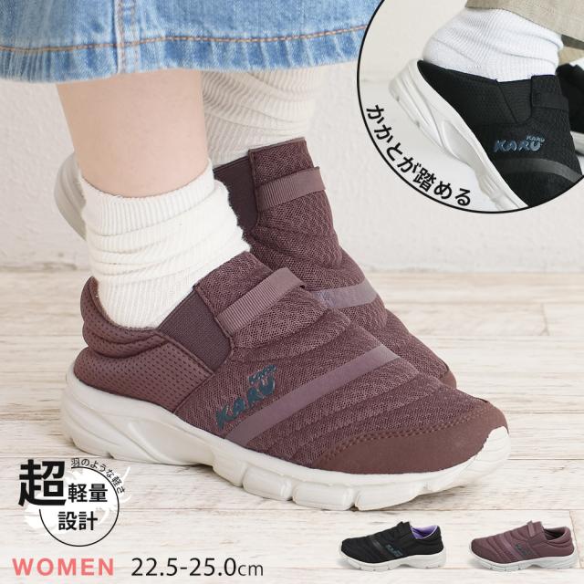ウォーキングシューズ レディース スリッポン 軽量 かかとが踏める 履きやすい サイドゴア スニーカー レディース コンフォートシューズ 母の日 敬老の日 かるかるリラックス 黒 ブラック ワインレッド 赤 3920