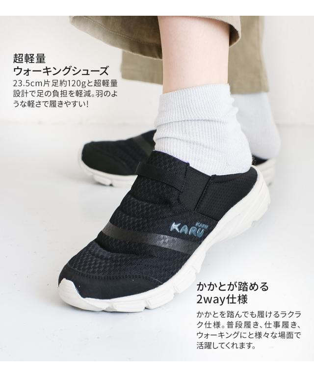 23.5cm片足約120gと超軽量設計で足の負担を軽減。