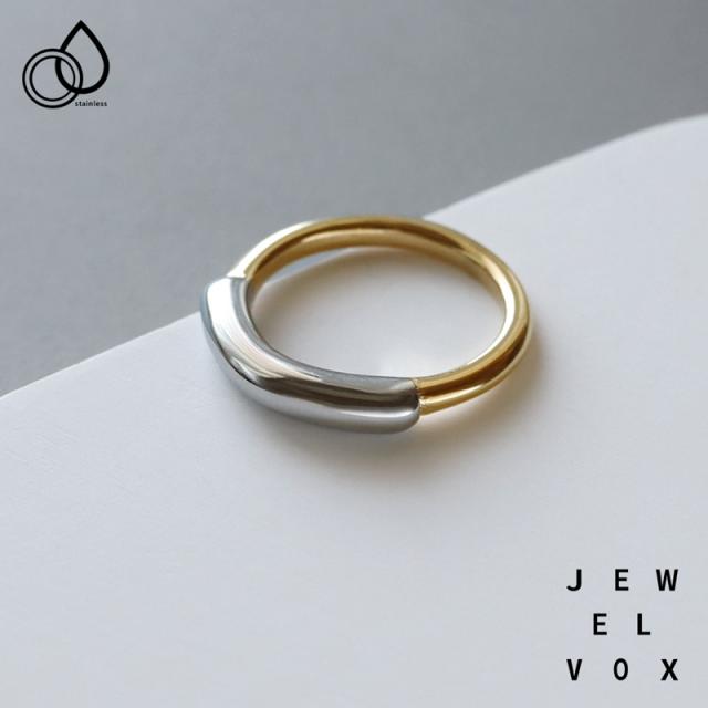 指輪 リング レディース ステンレス製 サージカルステンレス 金属アレルギー バイカラー コンビカラー つけっぱなし ゴールド シルバー 11号 13号 16号 シンプル 女性 プレゼント