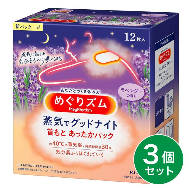 【まとめ買い】花王 めぐりズム 蒸気でグッドナイト ラベンダーの香り 12枚入×3個 首もと あったかパック 肌 直接貼る