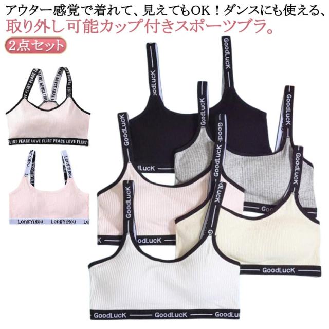 2点セット キッズ スポーツブラ ジュニアブラ 中学生 小学生 9-16歳 子供 ジュニア スポブラ ダンス 女子 ファーストブラ 取り外し可能カップ付き スポーツブラ かわいい ハーフトップ ブラジャー ノンワイヤー インナー 肌着 下着 ダンス インナー 送料無料