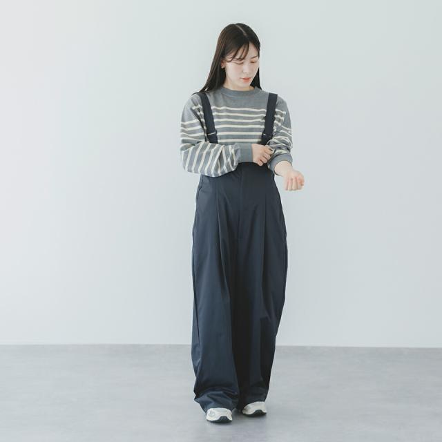 カットソー感覚で着られる、 カットソー感覚で大人っぽく着られるパネルボーダーのスウェットです。 ボディラインを拾わないリラックスシルエット。