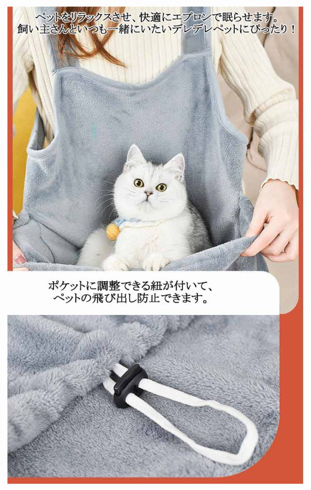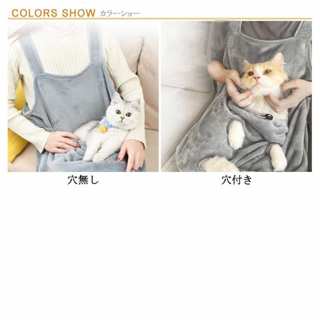 | 穴付きと穴無しの2タイプ選べる! ふわふわで猫や小型犬を入れるためのエプロン ペットをリラックスさせ、快適にエプロンで眠らせます。 飼い主さんといつも一緒にいたいデレデレペットにぴったり! 両面フリース素材で作られるので、ふわふわでペットの肌にも優しいです。 ポケットに調整できる紐が付いて、ペットの飛び出し防止できます。 後ろがボタンが付いており、着脱も楽になります。 足が出せる穴開きタイプで猫の爪切りや耳の洗浄、歯磨きなどのケアを安全に行えます。 | |