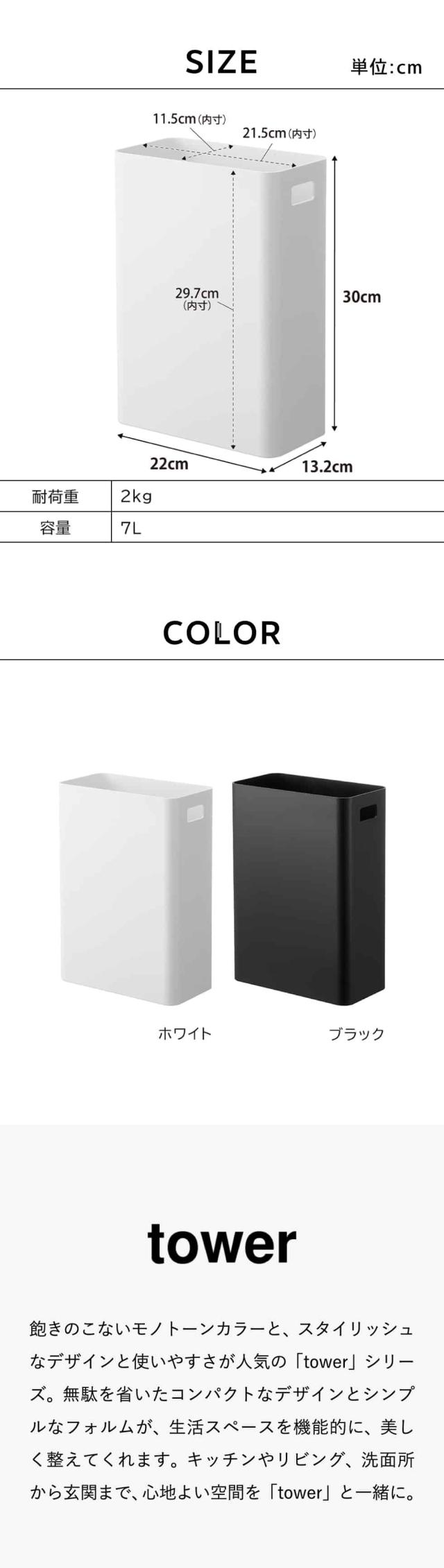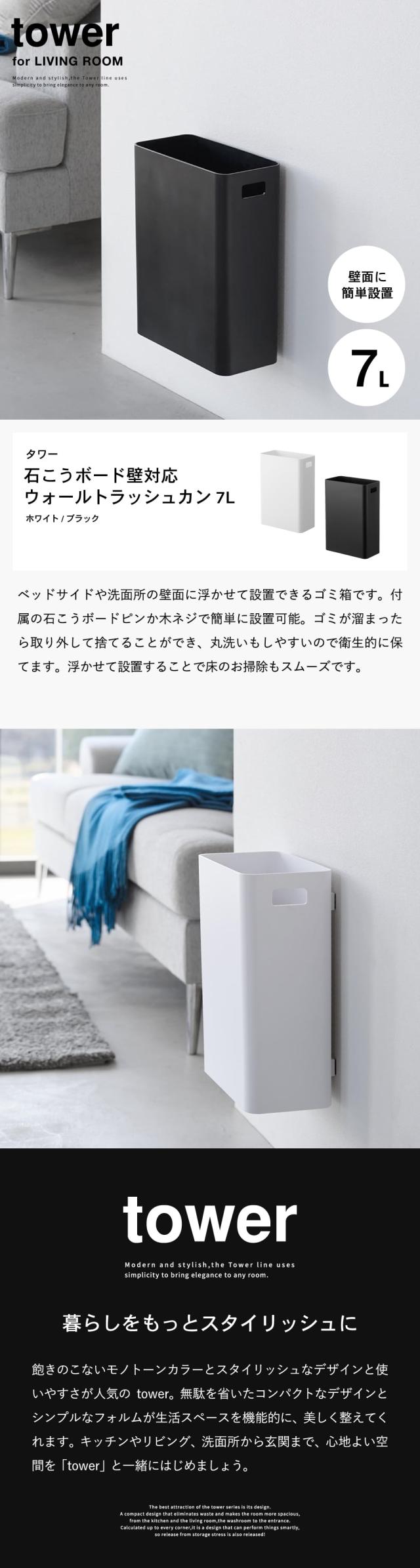 山崎実業 公式 tower ウォールトラッシュカン タワー 7L 石こうボード壁対応 送料無料 1630 1631 ホワイト ブラック ゴミ箱 トラッシュ缶 ダストボックス 収納ボックス 浮かせる収納 タワーシリーズ yamazaki