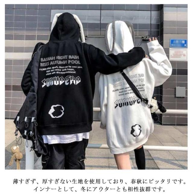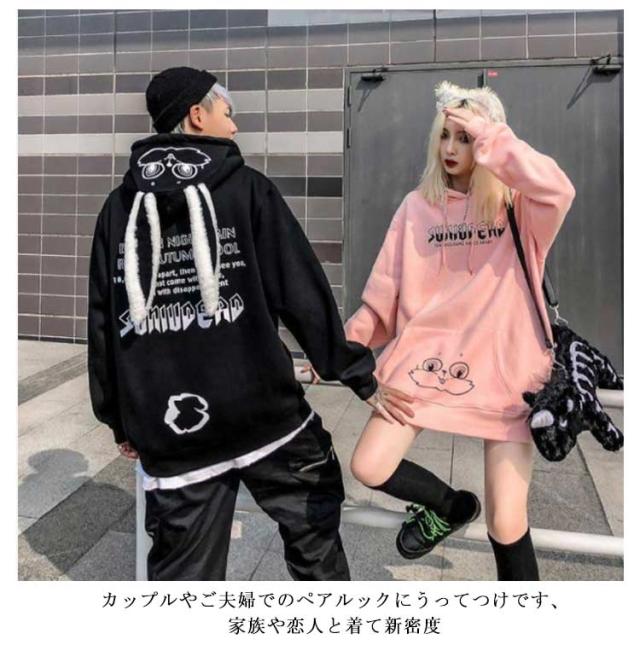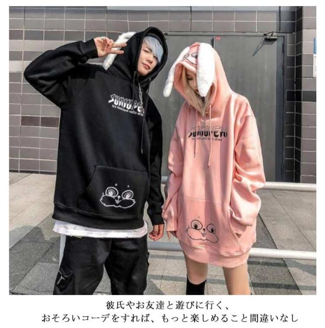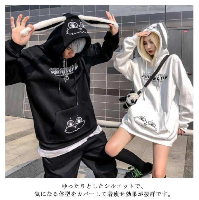 プルオーバー フード付き パーカー 裏起毛 うさぎ耳 トップス スウェット トレーナー 原宿系 メンズ 厚手 アウター うさぎ耳 レディース カジュアル ゆったり ストリート系 おしゃれ 秋 春 冬 ペア カップル お揃い 彼氏 彼女 誕生日