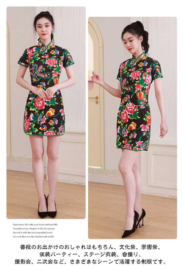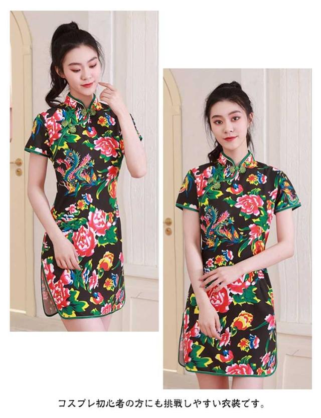 花柄 チャイナ風 チャイナ服 チャイナドレス ワンピース ミニ丈 コスプレ パーティードレス チャイナ 衣装 学園祭 大人 ロングワンピース スリット レディース 半袖 ハロウィン パーティー チャイナドレス お祭り 出演 仮装 コスチューム 文化祭 中国