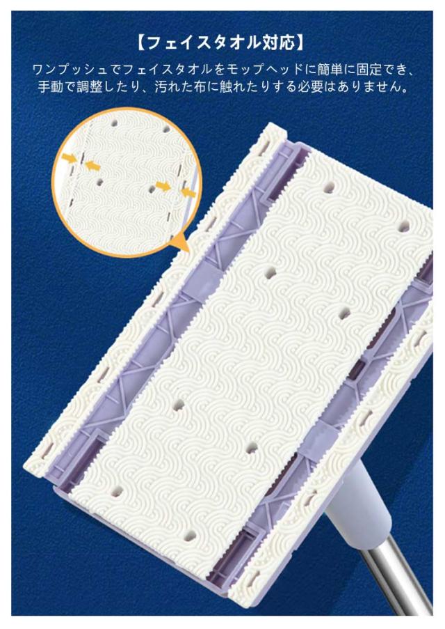 雑巾10枚付き 無手洗いモップ 床掃除 手で洗う必要なし 全自動 フェイスタオルモップ バスルーム 無手洗いモップ ミニモップ 多機能 小型モップ 腰曲げず 掃除モップ 乾湿両用 水拭き 床拭き ハンズフリー 360°回転ヘッド 片手操作可能 多角度転換