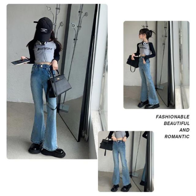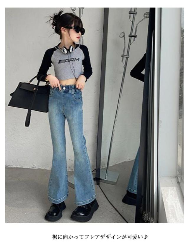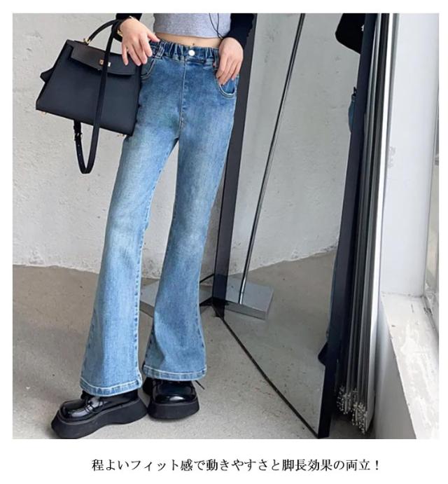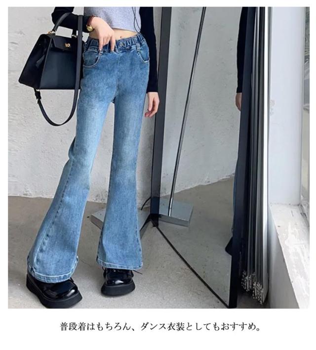 ロングパンツ 子供 冬 ジーンズ 子供服 春秋 デニムパンツ フレア ジュニア ダンス衣装 キッズ ジーパン ボトムス おしゃれ 長ズボン フレアパンツ ズボン ウエストゴム ジュニア 美脚 学生 演出 デニムパンツ 発表会 入学式 旅行 大きいサイズ ギフト