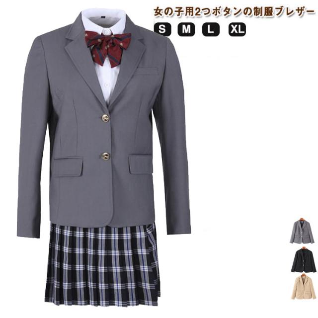 | 女の子用2つボタンの制服ブレザー スッキリとしたVゾーンで、小顔効果も。ネクタイもキレイにおさまり、全体のバランスもとってくれます。 レギュラーシルエットで何にでも合わせやすい!少し細身に見える♪とっても着やすい制服です。 程よくウエストがシェイプされた、スタイルアップデザイン。 制服が無い学校の通学・入学式・卒業式用にも、もちろんイベントにもピッタリです。 | |