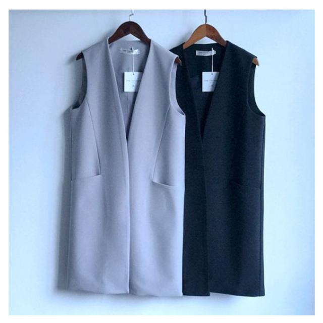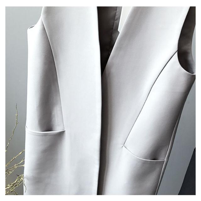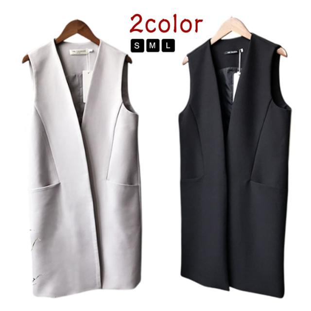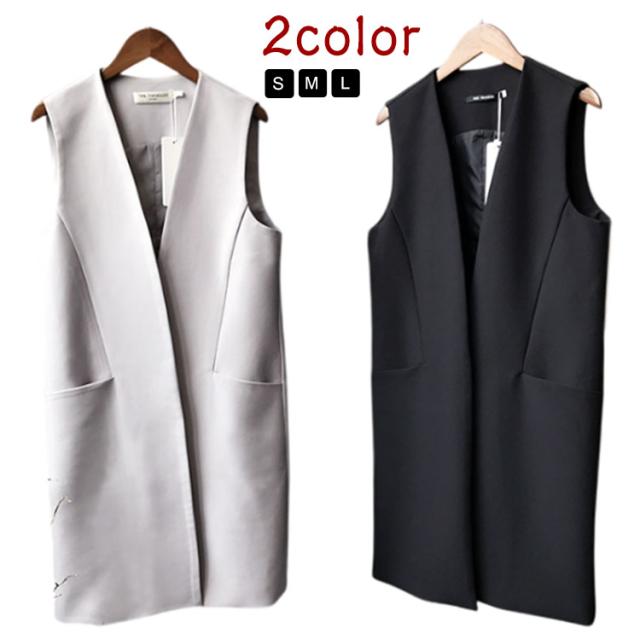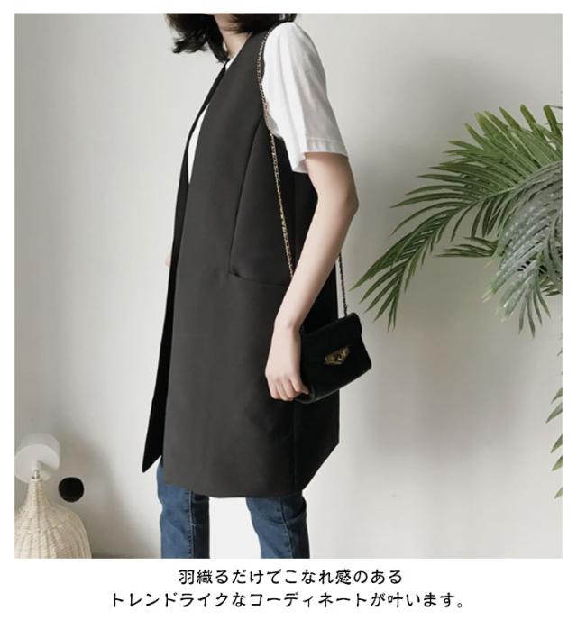 ノースリーブ ノーカラー レディース ベスト 大きいサイズ アウター 無地 ジャケット 50代 レイヤード 40代 羽織り 60代 ミセス おしゃれ 秋冬 トップス ジレ セミロング丈 フォーマル 大人 OL 通勤 ジレ ポケット オフィス カジュアル