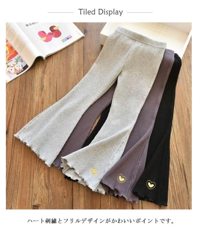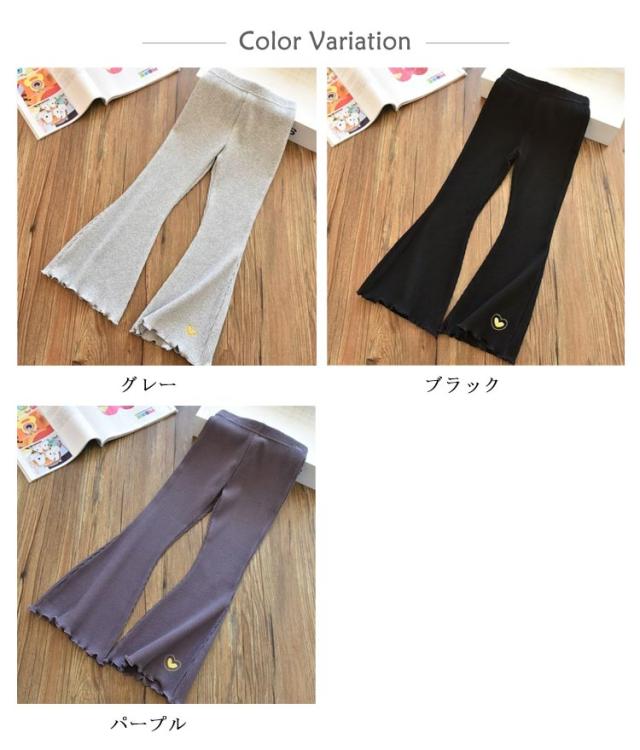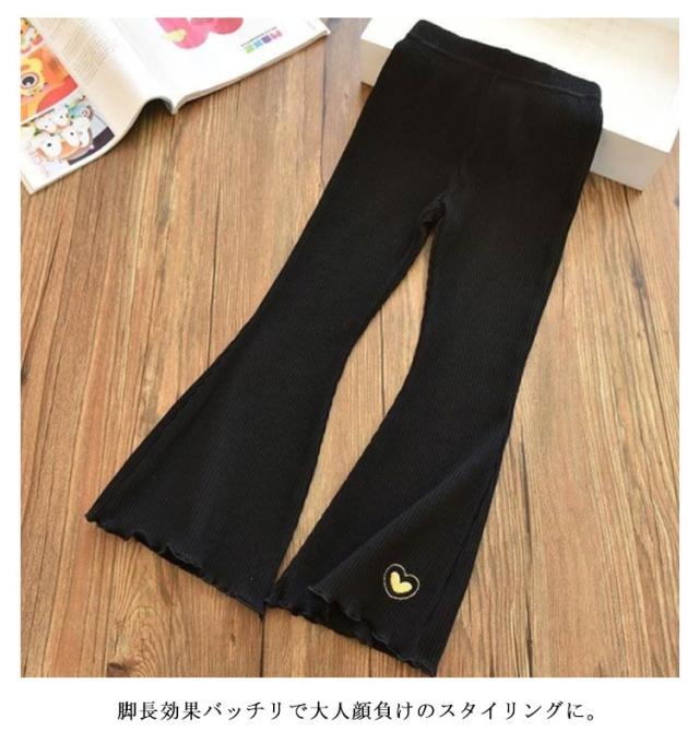 ロングパンツ 刺繍 ズボン フレアパンツ 女の子 リブ レギンス レギンス かわいい フリル 子ども リブレギンス 可愛い 春 秋 110 120 130 140 150