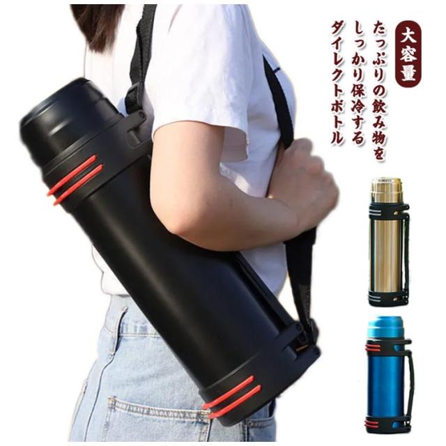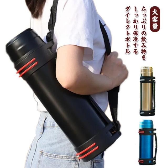 保冷 保冷保温 ワンタッチ 水筒 2リットル スポーツ 直飲み アウトドア 直のみ 大容量 保冷専用 スポーツボトル ステンレスボトル ショルダーベルト付き ステンレス 登山 ボトル 広口 ダイレクトボトル お手入れ簡単 持ち手付き 釣り 大容量 ギフト プレゼント