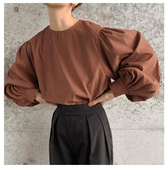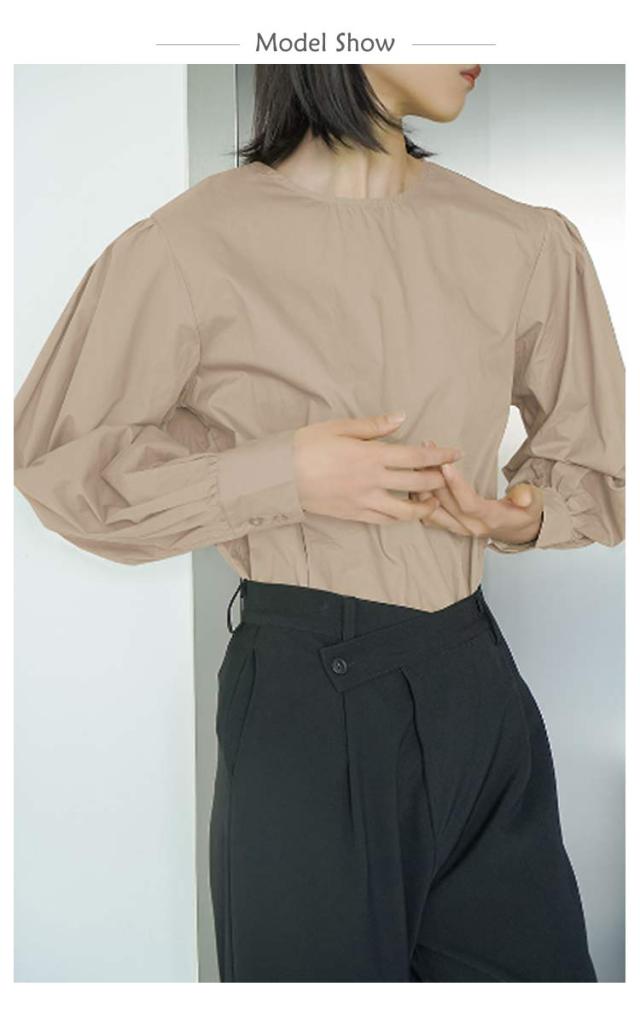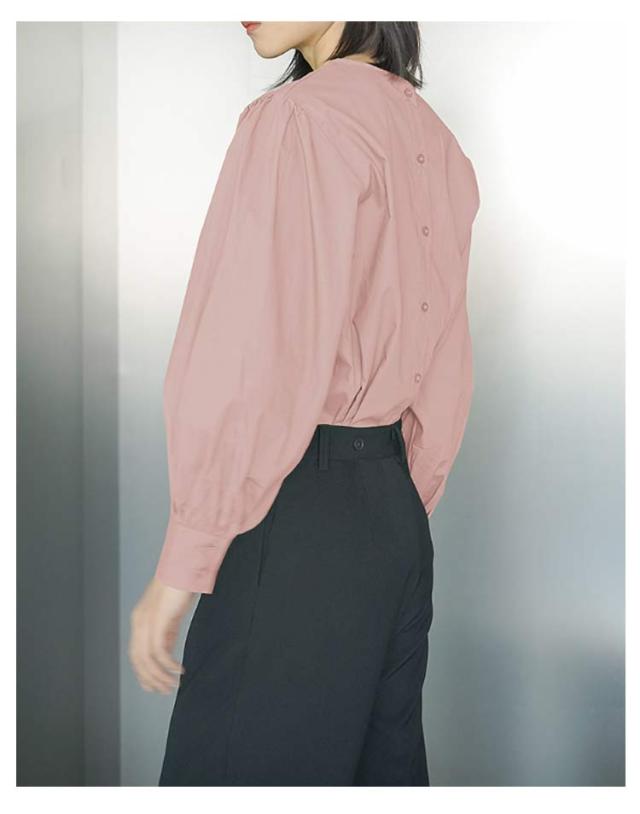 綿 全6色!バックボタン 長袖シャツ ブラウス レディース ボリュームスリーブ 全6色!バックボタン ラウンドネック トップス ゆったり キレイめ 30代 40代 春 夏