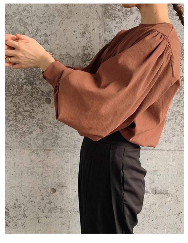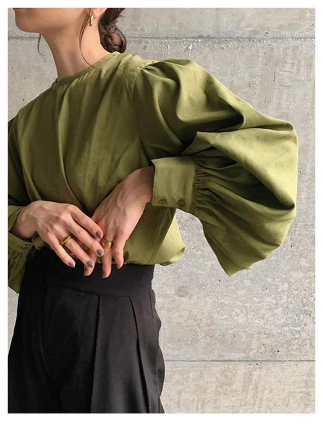 | ナチュラルなコットンの風合いが魅力のボリュームスリーブトップス。 二の腕をカバーする長袖のデザインも、大人に嬉しいポイント。 狭すぎないラウンドネック仕様、バックボタンデザインも新鮮な印象に。 | |