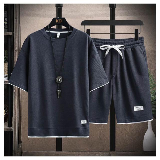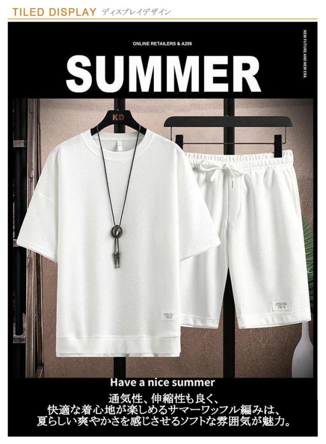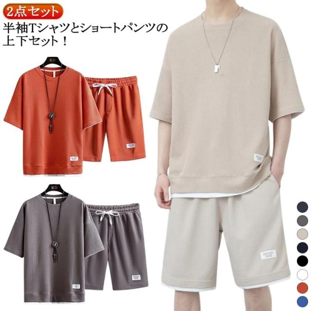 ワッフル 半袖 ジャージ 上下 夏用 セットアップ セット 上下セット ジャージ メンズ 半袖 パジャマ ハーフパンツ 上下セット ジャージ上下セット スポーツウェア Tシャツ ランニング ダンス トレーニングウェア シンプル