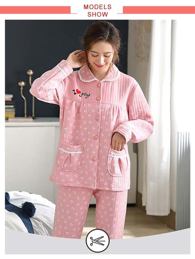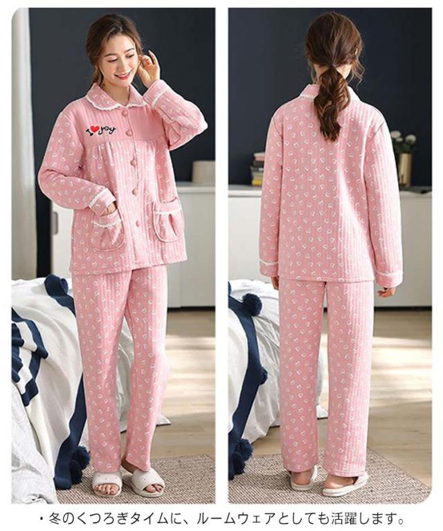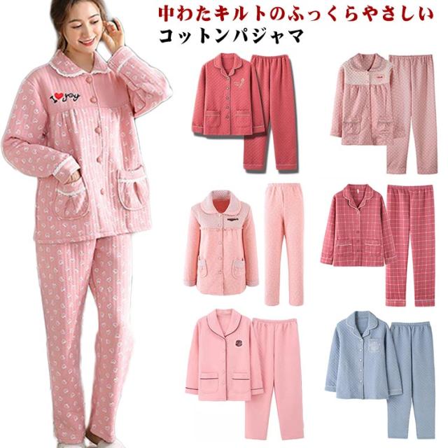 レディース ロングパンツ 長袖 綿 上下セット パジャマ パジャマ キルト 部屋着 前開き ナイトウェア 入院 旅行 厚手 敬老の日 ギフト おしゃれ かわいい 婦人