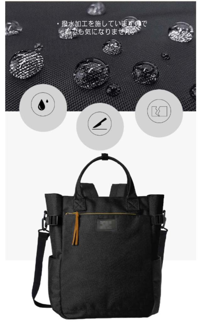 | ・3Wayで使えるリュック ・トートバッグやショルダーバッグとしても使用できる3WAY仕様で、デイリーユースはもちろん、旅行のお供などにも便利なリュックサック。 ・撥水加工を施していますので雨でも気になりません。 ・日常のシーンによって使い分けもでき、家族間でも共有できるシンプルデザイン。 | |