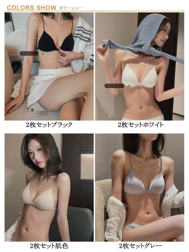 ブラジャー 細ストラップ 黒 背中見せ 2枚セット!前開き バックオープンブラ ブラ ブラ 前開きブラ 肩紐細め 背中あき おしゃれ バックオープン ノンワイヤー レディース ブラ 送料無料 肌着 背中 三角ブラ 大人 女性 セクシー 開き 下着 インナー 単品 シンプル
