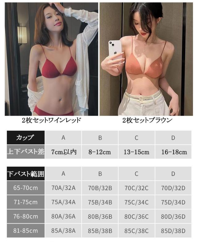 | サイズについての説明 | S=32/70AB M=34/75AB L=36/80AB XL=38/85 |