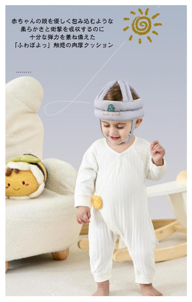 | ごっつん防止対策! メッシュ裹地で蒸れにくい ベビーヘルメット <お勧めポイント> ●内厚クッションで330°頭をしかつード 赤ちゃんの頭を優しく包み込むような柔らかさと衛撃を吸収するのに十分な弾力を兼ね備えた「ふわぽよっ」触感の肉厚クッション。 届いて、手に取って「これなら任せられる」と安心していただける厚きです。 ●おしゃれで可愛い8COLOR 映え感もバッチリな8種類のバリエーションをご用意!かぶるとと~っても可愛いですよ〜 ●通気性の良いメッシュ裏地 季節を間わず、頭皮に汗をかきやすい赤ちゃんの為今回新たに改良した、通気性のよいメッシュ裏地蒸れを軽減し爽やかな着用感で頭を保護します。 厚みのあるクッションですが、頭部はクロスタイプなので、通気性がよく、オールシーズンご使用いただけます。 ●2つの調整部でしっかりフィット! マジックテープでサイズ調整できるので、幅広い年齢にも対応しています。 調節可能なバックル付きの伸縮性のあるあご紐でやさしくしっかりフィットしズレたりしない!成長に合わせられるから長く使える! | |