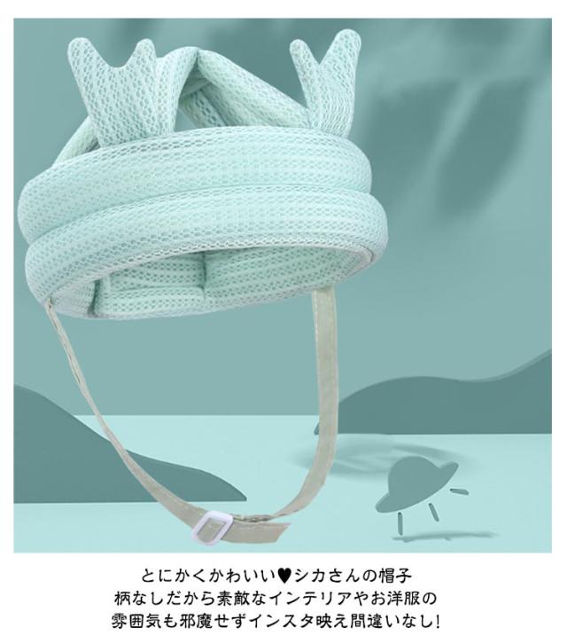 | ごっつん防止対策! 表裏全面メッシュ素材で蒸れにくい ツノ付きがカワイイ! ベビーヘルメット <お勧めポイント> ●内厚クッションで330°頭をしかつード 赤ちゃんの頭を優しく包み込むような柔らかさと衛撃を吸収するのに十分な弾力を兼ね備えた「ふわぽよっ」触感の肉厚クッション。 届いて、手に取って「これなら任せられる」と安心していただける厚きです。 ●とにかくかわいい?シカさんの帽子 柄なしだから素敵なインテリアやお洋服の雰囲気も邪魔せずインスタ映え間違いなし! ●サラッと快適!表裏全面メッシュ素材 表裏全てメッシュ素材になっており、体温が高く汗っかきな小さなお子様でも蒸れずに快適に過ごすことができます。れを軽減し爽やかな着用感で頭を保護します。 厚みのあるクッションですが、頭部はクロスタイプなので、通気性がよく、オールシーズンご使用いただけます。 全面メッシュだから洗濯時の乾きも早くて嬉しい! ●2つの調整部でしっかりフィット! マジックテープでサイズ調整できるので、幅広い年齢にも対応しています。 バックル調節でやさしくしっかりフィットしズレたりしない!成長に合わせられるから長く使える! | |