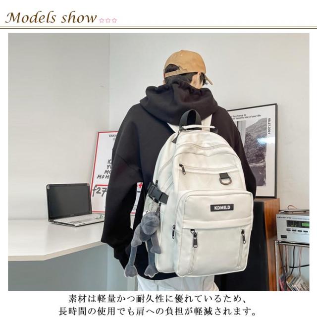 | 素材は軽量かつ耐久性に優れているため、長時間の使用でも肩への負担が軽減されます。 中学生、高校生の通学に最適な軽量・大容量リュックです。 収納部は大きく開く使いやすい設計で、大容量の収納スペースも嬉しいです。 それぞれのポケットに仕切られて、書籍、文房具、ノート、折りたたみ傘、お弁当などをスッキリと整理整頓します。 女子、男子を問わず、幅広いターゲットに適したユニセックスデザインとなっております。 おしゃれなデザインは、韓国の流行を取り入れたトレンド感抜群のアイテムです。 防水機能が備わっているので、突然の雨や水分から貴重品をしっかりと守ります。 | |