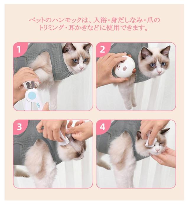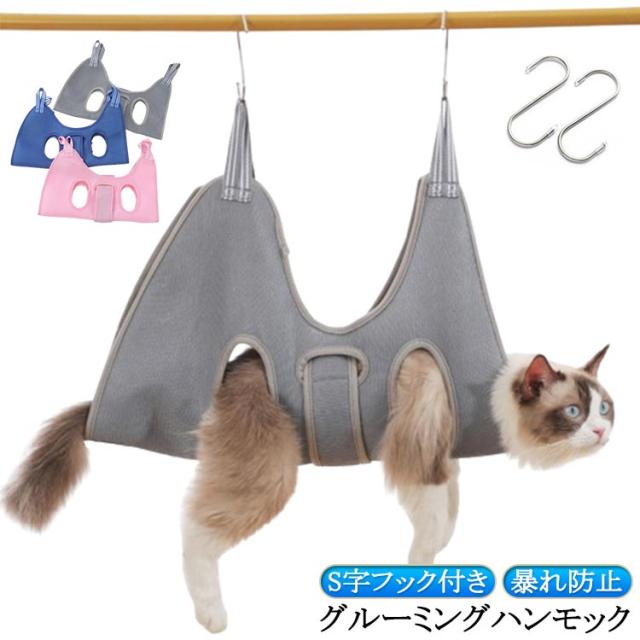 服薬 ペット 吊り 猫 S字フック付き ネコ 吊り上げ トリミング 猫 グルーミングハンモック ハーネス 爪切り ハンモック 歯磨き 目薬 介護 耳掃除 ペット美容 入浴 お風呂 シャンプー ドライヤー 暴れ防止 拘束バッグ