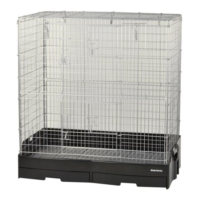 イージーホーム80ワイドタイプのハイ(High)仕様。前面パネル、上下に2ヶ所、大型扉(出入口)を設定しました。チンチラからデグー、小鳥まで幅広く対応します。※この製品にはキャスターは付いておりません。