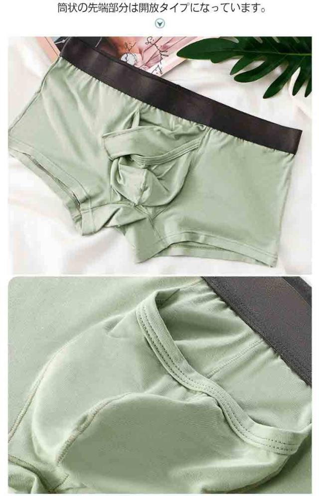| 男性自身の形に沿ったゾウさん型のボクサーパンツです。 伸縮性の良い柔らかなストレッチ生地が、ボディラインや男性自身にピッチリとフィットします。 筒状の先端部分は開放タイプになっています。 | |