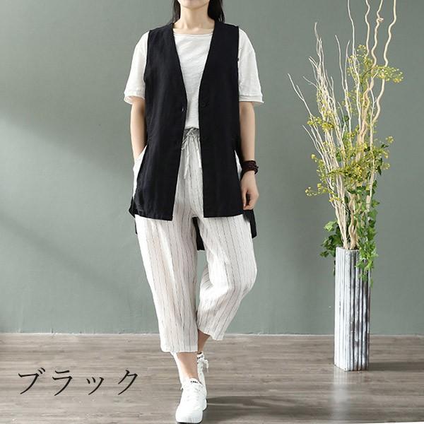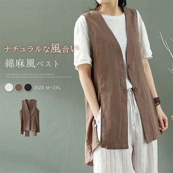 ベスト 春 夏 秋 レディース アウター ノースリーブ 綿麻風 レイヤード 前開き 無地 ショート丈 トップス ゆったり 着回し おしゃれ 20代 30代 40代 M L XL 2XL ブラック ホワイト ブラウン