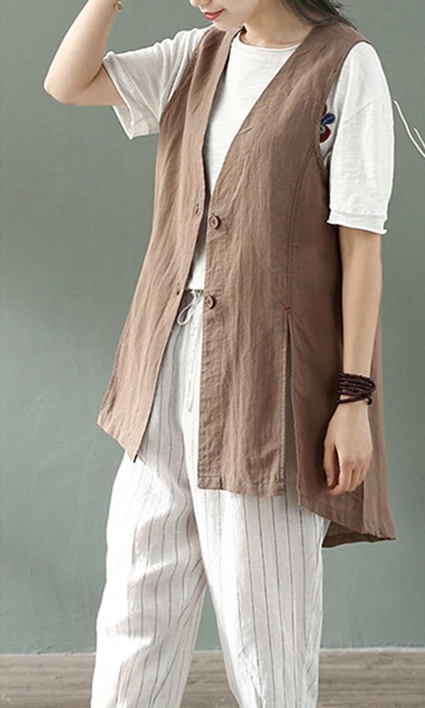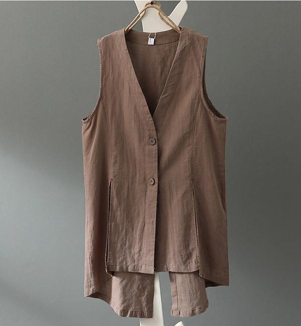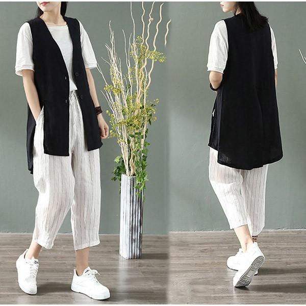 ベスト 春 夏 秋 レディース アウター ノースリーブ 綿麻風 レイヤード 前開き 無地 ショート丈 トップス ゆったり 着回し おしゃれ 20代 30代 40代 M L XL 2XL ブラック ホワイト ブラウン dk018sah5