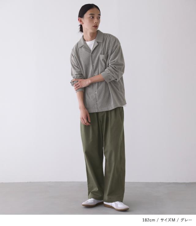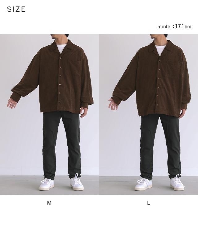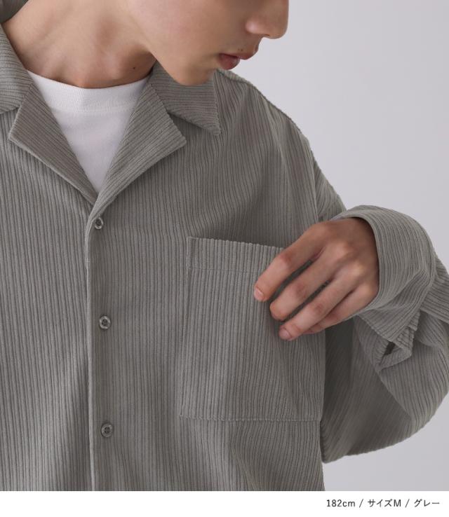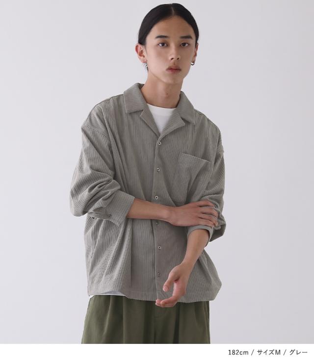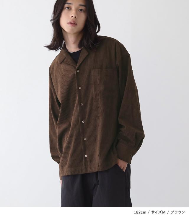 『メンズコーデュロイシャツ』【メール便不可】【30】[カジュアルシャツ 長袖 メンズ トップス コーデュロイシャツ 開襟シャツ オープンカラー 羽織 レイヤード 重ね着 コーデュロイ ランダムピッチ]
