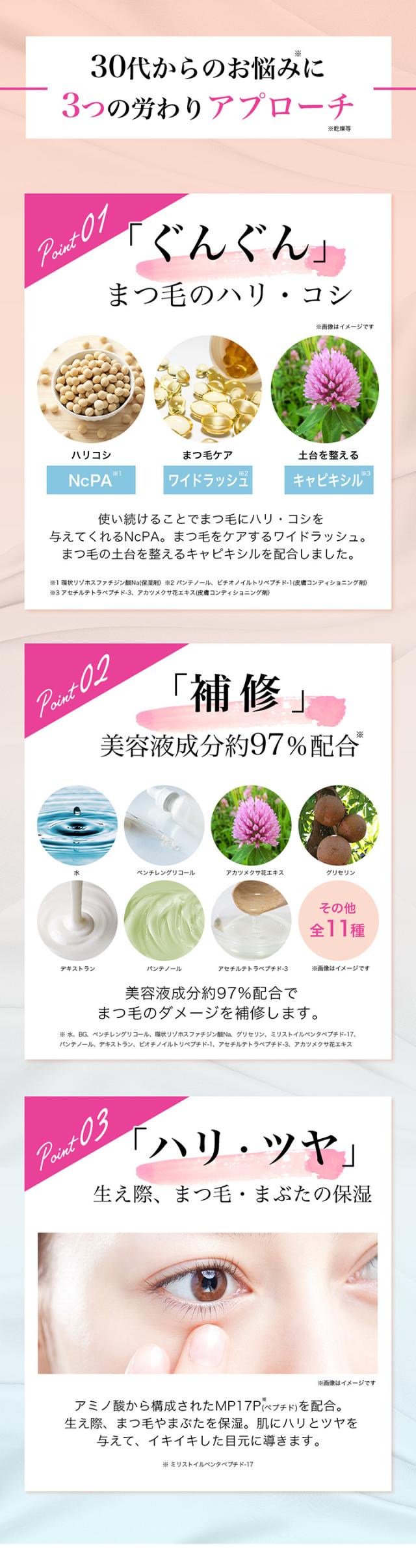 美容(保湿)成分がハリコシのある美しく健やかなまつ毛へ導く