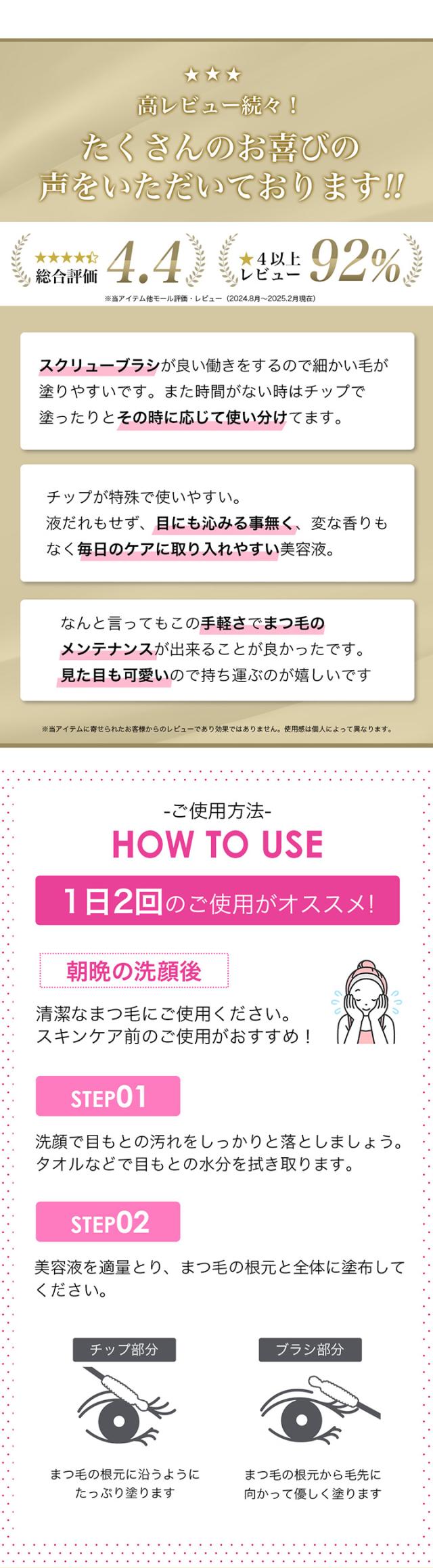 ・朝晩2回、洗顔後の清潔なまつ毛にお使いください。