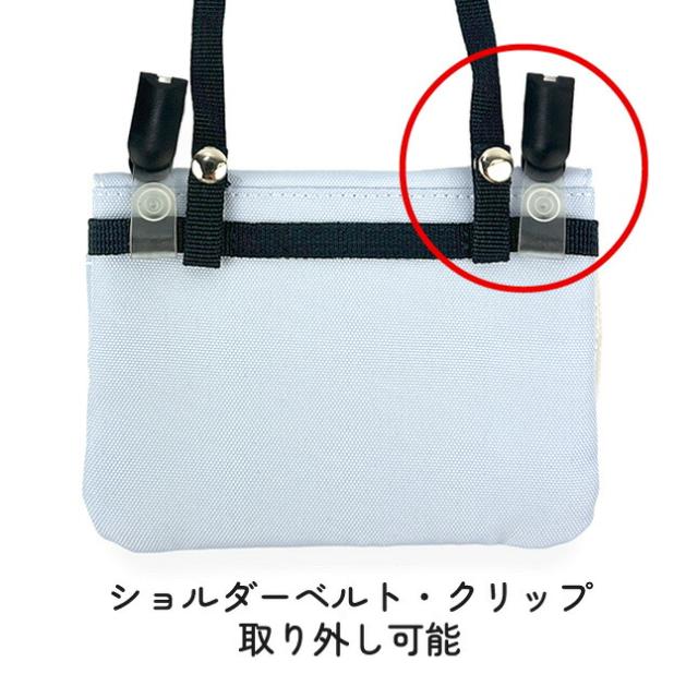 クリップでポケットがない服に取り付けられ、ショルダータイプでも持てる2WAY仕様。