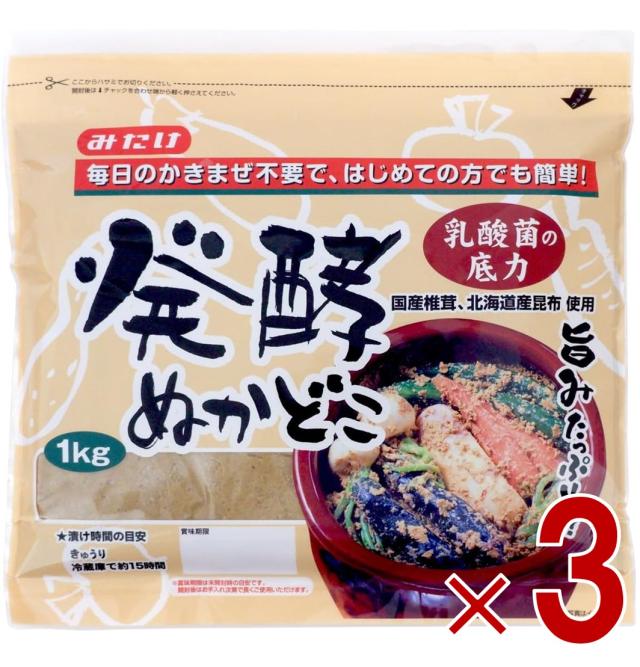 【23-29日限定 タイムセール】みたけ 発酵ぬかどこ 発酵 ぬかどこ ぬか漬け ぬか床 簡単 冷蔵庫 1kg 3袋
