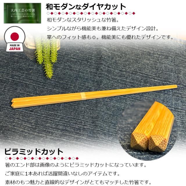 大内工芸 日本製 ダイヤカットおとり箸 菜箸 菜ばし さいばし おはし 箸 竹製 竹箸 はし カトラリー 国産 職人 手造り 持ちやすい 食事 食卓 キッチン用品 台所用品 キッチンツール 食器 おしゃれ 男性 女性 大分県 日田市 ロングセラー 家庭用 業務用 普段使い 区分N H313