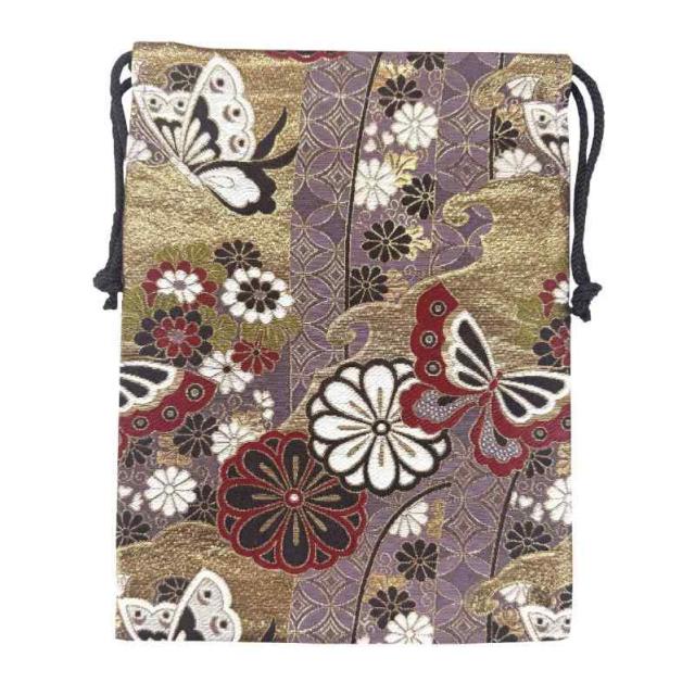 [マシュール] 御朱印帳袋 朱印帳入れ 19×26? 巾着袋 日本製 金襴 京都 西陣織 和柄【蝶 薄紫】