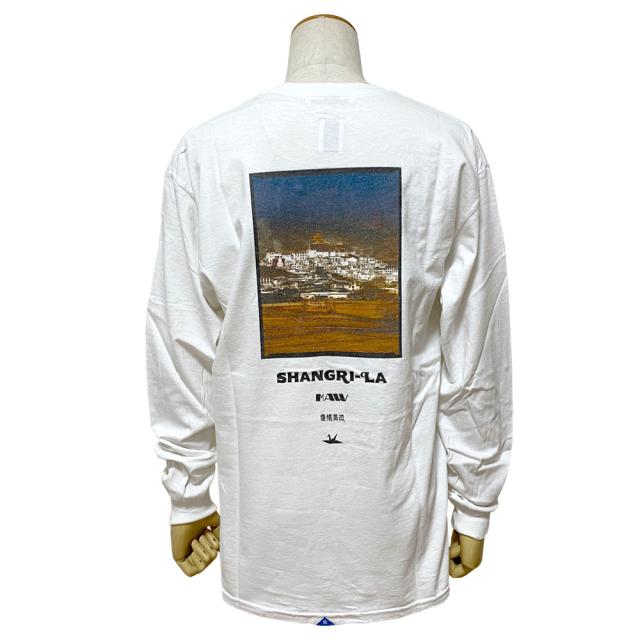| 商品詳細 | 6.0ozの天竺を使用したL/S Tシャツ。 Tシャツにはワンウォッシュをかけています。 胸にはプリント、背中にはディレクターのMEI自らが撮り下ろした中国、雲南省シャングリラの写真とグラフィックがプリントされています。 |