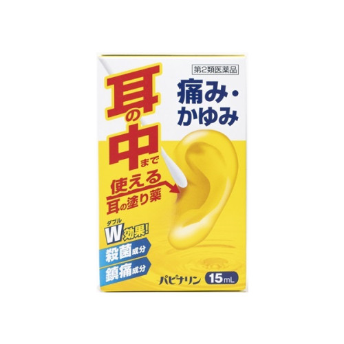 パピナリンは、アミノ安息香酸エチルおよびプロカイン塩酸塩の鎮痛作用、フェノール、アクリノール水和物およびホモスルファミンの殺菌作用などにより、耳鳴、耳漏、耳掻痒、耳痛、外聴道炎、中耳炎に効果を発揮します。