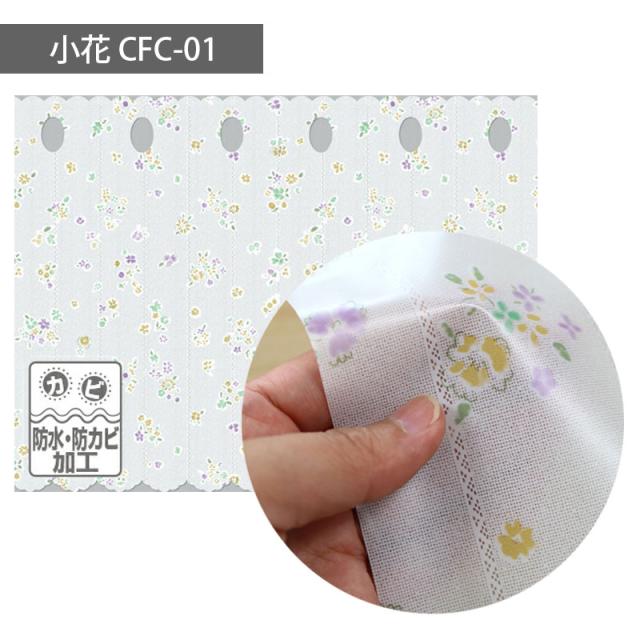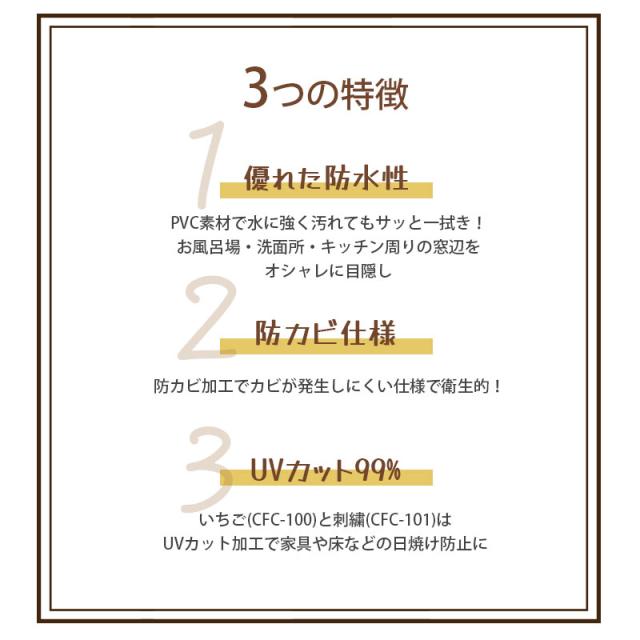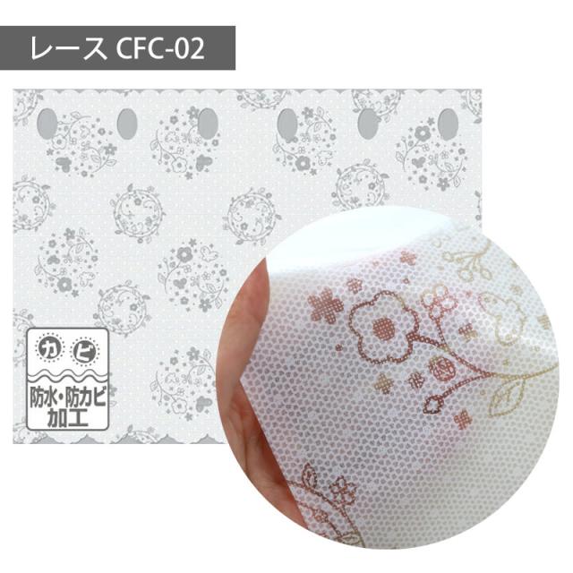 カフェカーテン 防水 目隠し 小窓 ビニール カーテン 水回り 防カビ バスカーテン お風呂 浴室 キッチン 突っ張り棒 テンションポール おしゃれ かわいい 小花柄 レース ホワイト 日本製 45cm丈 150cm幅 0.17mm厚 CFC-01 CFC-02 CFC-100 CFC-101