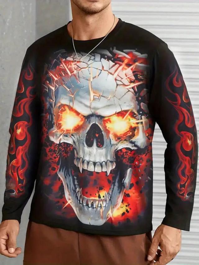 夏物 ド派手 スカル柄 プリント ロンT 116 黒赤 フェニックス 長袖 柄シャツ ストリート ダンス HIPHOP B系 ヤクザ ヤンキー オラオラ系 悪羅悪羅 ホスト 服 メンズ ファッション