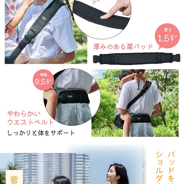 | 商品仕様 | 本体サイズ:33×10×16cm 肩パッドサイズ:43×7cm サポートクロス:33×28cm ウエストベルト:29×9.5×60cm |