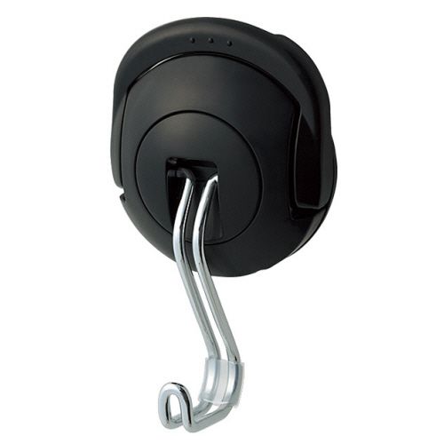 ●超強力なマグネットフック、色は黒、5個セットです。●デスクワゴンやキャビネットなど薄いスチール面でも高い保持力を発揮します。●上部のハンドルを手前に倒すと軽い力で簡単に取り外しができるユニバーサルデザインです。また、ハンドルをたおした状態なら位置決めも簡単にできます。●平らな持ち手のものを掛けるのに好適なフック形状です。●フックは360度回転し、前方向にも動きます。どんな向きでも自由自在で、天井に取り付けても使えます。●裏面キズ防止シート付きです。●壁を傷つけにくいシリコーンチューブ付きです。●分別廃棄が可能です。