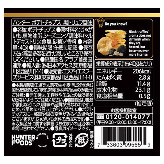 送料込み ハンター ポテトチップス 黒トリュフ風味 40g×12個 HUNTER’S ハンターズ HUNTER お菓子 黒トリュフ ポテト ポテトチップ