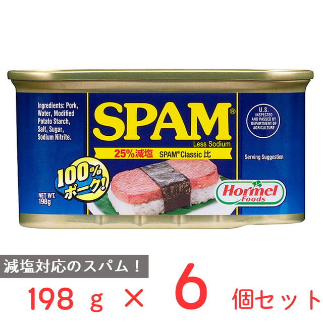 送料込み ホーメル スパム ポークランチョンミート レスソルト 198g×6個 スパム SPAM スパム缶 ランチョンミート レスソルト